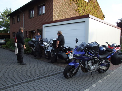 Am 14. Juni trafen wir uns beim Andreas. Gegen 21:00 Uhr sollte die Verladung der Motorräder am Düsseldorfer Bahnhof sein.