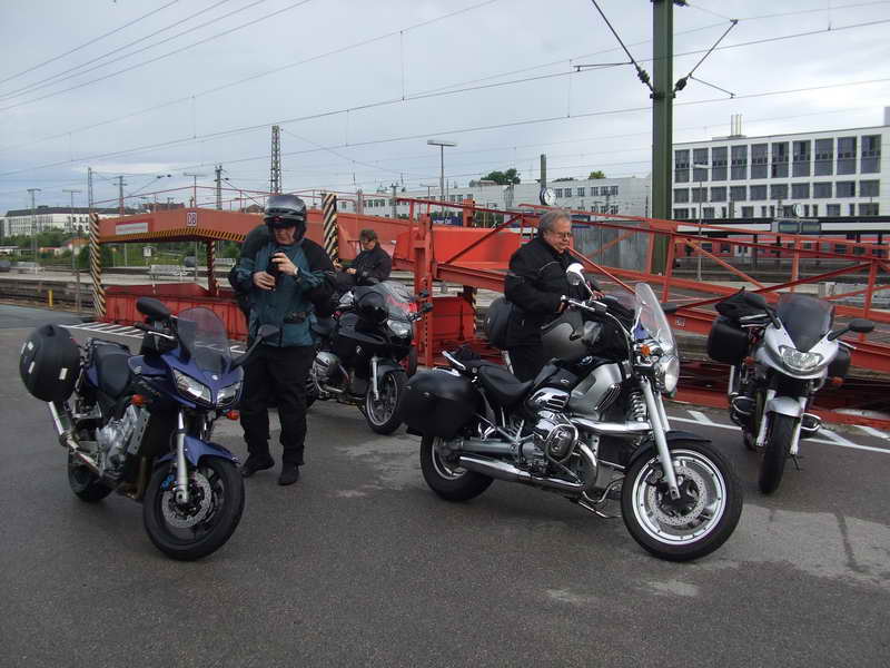 Am 15. Juni sind wir also in München angekommen. Nach dem super Frühstück im Abteil (boaahh, die Brötchen waren ja vom Vortag ;-) ), ging es bei durchwachsenem Wetter ans Entladen der Motorräder. Der Rolf hat nach dem Durchschauen der Kabine, ob denn auch alles raus ist, erst einmal seinen Helm vergessen. Naja, noch früh genug bemerkt, bevor der Zug weiter nach Salzburg ist - wäre ein Spass gewesen.