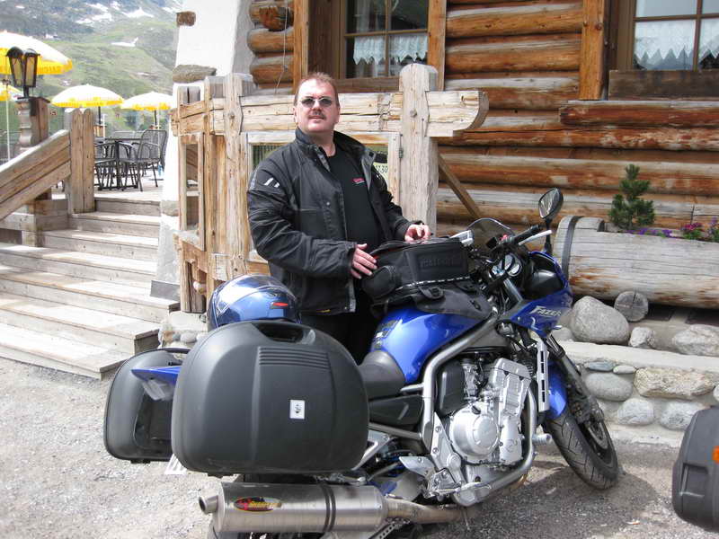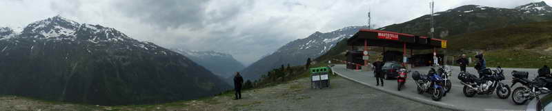 Die italienische Grenze überquerten wir auf dem Timmelsjoch. Zwischen meterhohen Schneewänden fuhren wir Richtung Gipfel um Fotos zu machen. An der Mautstation hatten wir dazu ja keine Zeit - los, los, Bilder machen wir oben. Leider war der Gipfel in absolut dichten Nebel getaucht, war also nichts mit Bildern. Zumindest konnte ich mir meine Handschuhe noch richtig anziehen, dazu hatte ich an der Mautstation auch keine Zeit mehr.