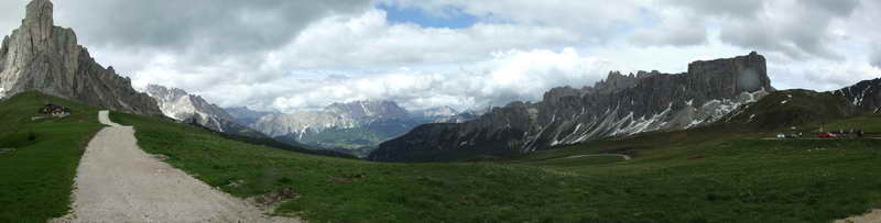Als erklärtes Nichtziel hat der Andreas heute den Passo Giau auserkohren (nee, nee, das schaffen wir heute nicht, ist zu weit...)um die heiße Schokolade, die da so gut ist, zu trinken. Nach dem Passo Valles kamen dann auch bald die ersten Hinweisschilder auf das zu weit entfernte Ziel in Sicht. Oben am Passo Giau angekommen gab es noch ein paar vereinzelte Regentropfen. Der Kakao war auch nicht mehr so gut. Da war der Kakao am Gaviapass wesendlich besser - eben sehr schokoladig. Allerdings entschädigt die Aussicht hier am Passo Giau dafür - einfachh fantastisch.