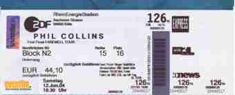 Bei miserabelen Wetter ging's in das neue Rhein Energie Stadion in Köln (das neue Dach ist übrigens nicht dicht). Als Vorgruppe spielte 'Mike and the mechanics', danach dann Phil Collins, der das Wetter mit folgenden Worten umschrieb: "It is fucking wet!"